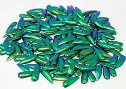 Даже сегодня можно приобрести такие наборы для декорирования! Упаковка из 200 надкрылий жука-самоцвета (необработанных - разных размеров), выращенных из экологически чистых видов жуков-самоцветов из Таиланда. Sternocera aequisignata - Переливающиеся крылья Green Jewel Beatles. Популярны у художников и изготовителей различных товаров.